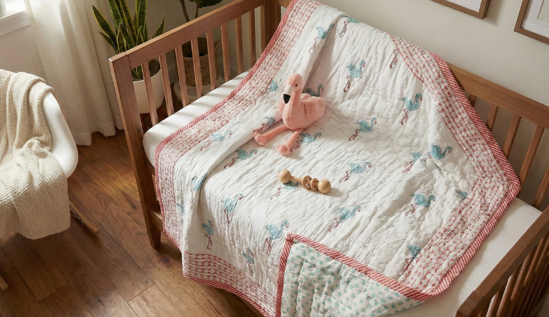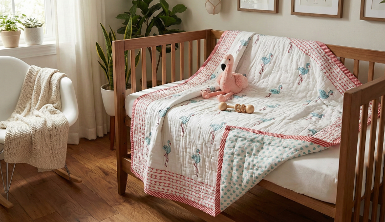 This piece fits naturally into collections of quilts for kids, offering the softness expected from baby quilts handmade in baby quilts India. Light yet insulating, it also works well when a best quilt for heavy winter is needed without feeling bulky.
